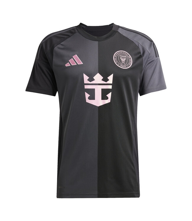 Bring Miami style to the stadium in this elegant Inter Miami CF away jersey from adidas. With pink details popping against a black and carbon half-and-half design, this supporter shirt exudes sophistication. Its moisture-managing AEROREADY and soft fabric are there to keep fans comfortable. A club sign-off and sewn-on crest show you appreciate first-class soccer.