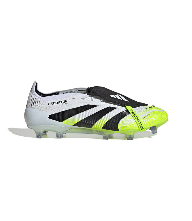 Discover the difference between aiming to score and knowing you will with adidas Predator boots that are crafted for goals. These Elite boots have a HybridTouch upper with a fold-over tongue and rubber Strikeskin fins that help provide perfect contact with the football. The Controlframe 2.0 firm ground outsole and adidas PRIMEKNIT collar are designed to give you a stable stance when the goal's at your mercy.